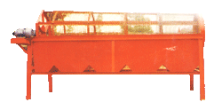 的滾筒的斜度向前流動,通過不同網目的的篩網逐漸被篩出。不大的石料篩出后落入各自的漏斗,然后由人工運出或自流送往成品堆。